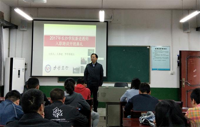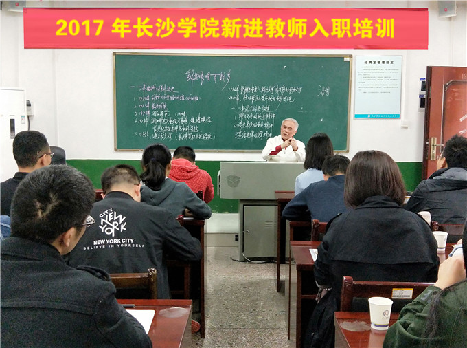 11月7日下午,我校2017年度新进教师入职校本培训正式拉开帷幕。人事处处长李学勇主持培训开课仪式,原长沙大学校长李峻教授为新进教师上了校本培训第一课。老校长倾情讲授校史、校训及我校办学定位,畅谈青年教师的使命、责任和未来发展。