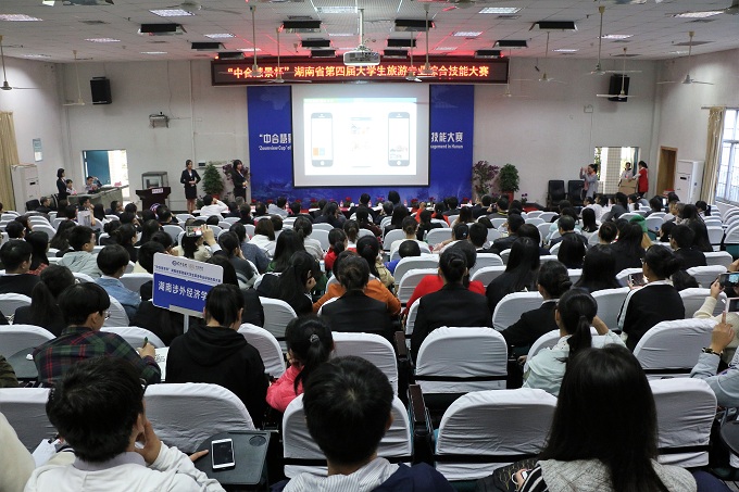 11月4日,“中合慧景杯”湖南省第四届大学生旅游专业综合技能大赛决赛在我校举行。本次大赛共吸引了来自省内29所高校的88支队伍参加,我校五项目获一等奖。省教育厅副巡视员左清,省旅游学会会长熊健,省教育厅高教处处长曾力勤,长沙市旅游局局长易冒,省教育厅高教处副处长张平、科长彭玮婧,我校党委书记韦成龙、副校长张世英、经济与管理学院院长李映辉及各高校领导出席了当晚的闭幕式并为获奖队伍颁奖。