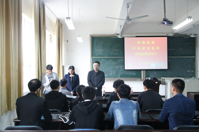 10月23日下午3点,土木工程学院在理工楼A303举办了中铁建设集团专场招聘会。党委书记韦成龙莅临现场指导毕业生“精准就业”, 招生与就业指导处处长夏湘远等陪同出席了招聘会。