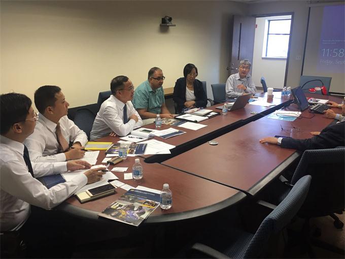 9月21日-22日,代表团首先访问了美国密歇根大学。密歇根大学副校长Jack Hu教授和密歇根大学迪尔伯恩校区工程与计算机科学学院副院长Ghassan Kridli教授、副院长Yi Lu Murphey教授等热情接待了屈林岩一行,并陪同代表团参观了密歇根大学安娜堡校区和迪尔伯恩校区两个校区的工程类实验室和其他相关教学设施。 双方就合作的领域与具体项目进行了初步探讨,并达成以下共识:两校首先在工程领域开展教师和学生项目合作,长沙学院每年可派遣1-2名工程领域优秀教师前往密歇根大学安娜堡校区进行为期一年左右的访学;2018年暑期可派遣6人左右教师团队(工程类)到密歇根大学安娜堡校区进行短期研修和培训。密歇根大学迪尔伯恩校区与长沙学院开设3+2模式的学生合作培养项目,成绩合格者可获密歇根大学硕士学位;密歇根大学迪尔伯恩校区为长沙学院优秀交流学生每人提供一万美元的奖学金。