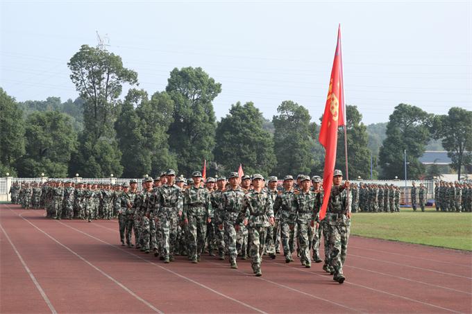新生队伍进行分列式汇报表演