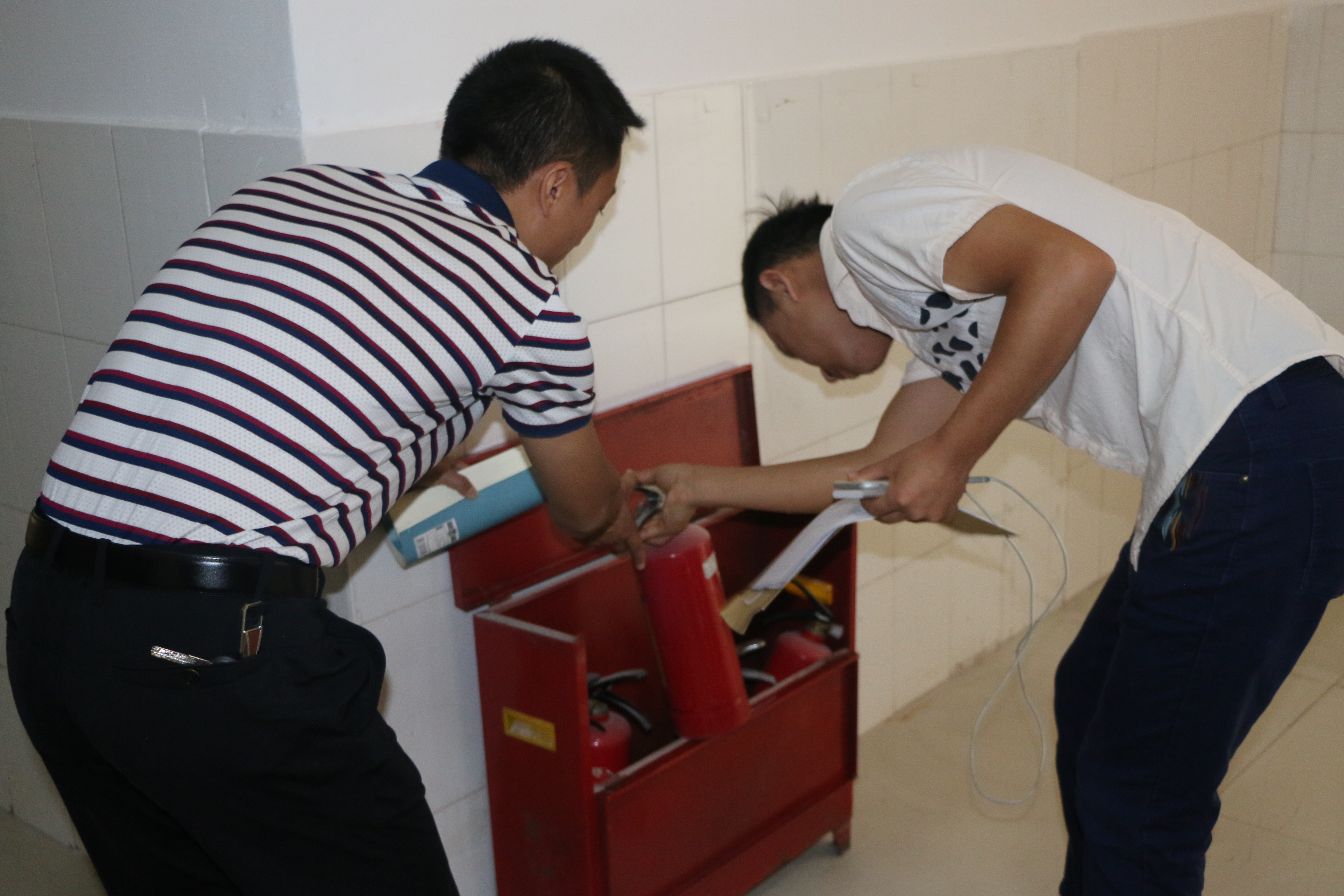 市文明办督查组对学生宿舍消防设施进行检查