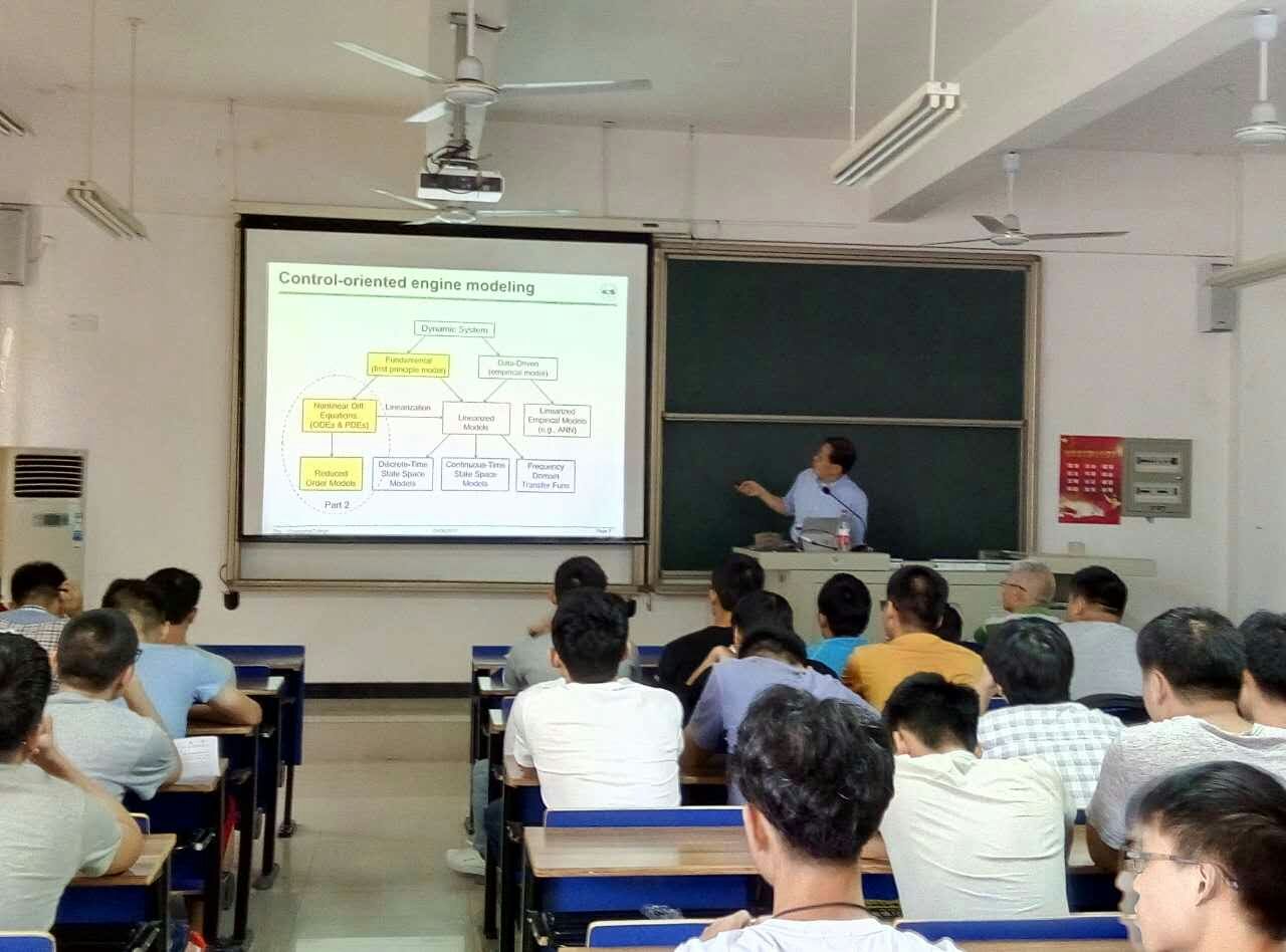 朱国明教授到校后举办了系列学术讲座,介绍相关领域学术前沿的发展动态,面向机电工程学院教师和各专业学生做了题为《Review of Modern Control Theory and its Application》和《Model-based Engine ControlHybrid Powertrain Optimization》等多场学术报告。并就机电工程学院教学科研团队及学科专业建设、实验室建设、硕士点申报、学科方向凝练、青年教师学术论文撰写等进行了具体指导;还就引进国际先进工程教育理念和模式加强工程实训中心建设提出了建设性意见。
