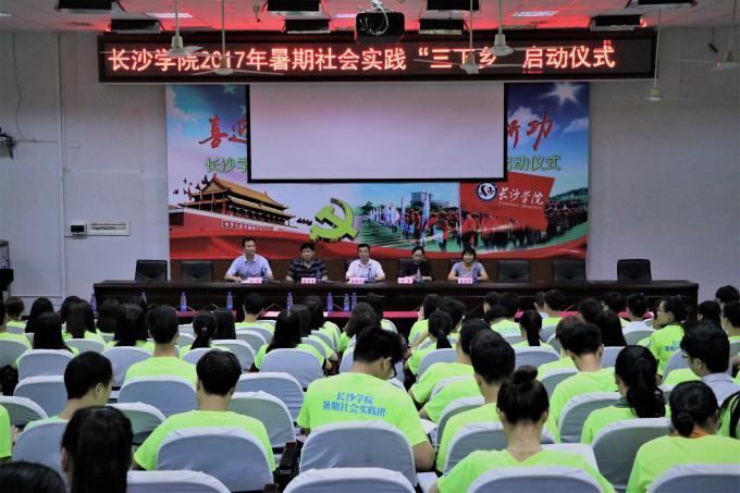 6月30日下午,由我校共青团长沙学院委员会主办的2017年暑期社会实践“三下乡”启动仪式在学校致远楼学术报告厅举行。我校党委委员、副校长周明侠,党委宣传部、学工部、团委、马克思主义学院的相关负责人,各学院党总支书记、各实践团队指导老师以及21支立项队伍志愿者参与了启动仪式。