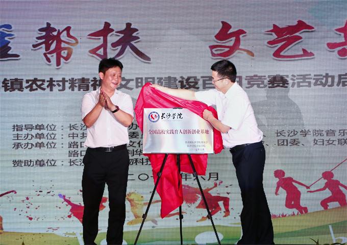 6月25日晚,由我校音乐学院、长沙县路口镇共同主办的“精准帮扶 文艺共建”活动暨长沙学院“全国高校实践育人创新创业基地”路口基地揭牌仪式在长沙县路口镇人民政府四会议厅举行。