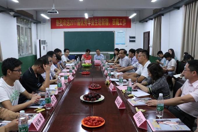 夏湘远介绍了此次赴新疆西藏工作的优秀毕业生情况,11位来自不同专业、立志为祖国边疆贡献青春的毕业学子选择了相同的目标。