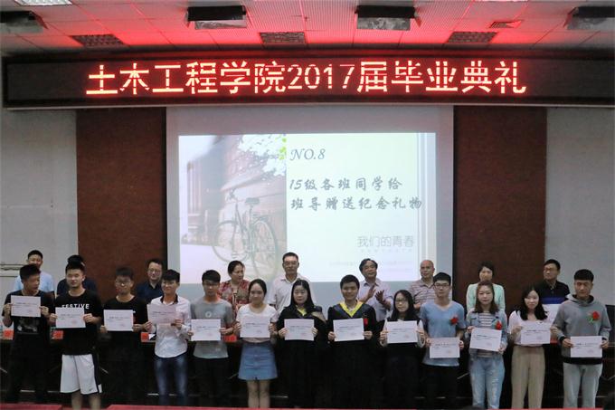 谢立辉寄语毕业生。他希望同学们能在日后工作中,用信念面对人生,用良知选择人生,用智慧美化事业,用勇气面对困难,祝愿同学们在未来事业中扬帆起航。教师代表杨瑞珍希望同学们在未来的道路上能够明确方向,心怀豁达,越走越远。紧接着,土木工程学院学生会主席刘野,湖南省优秀毕业生胡梦婷分别发表感言,缅怀了美好的大学生活,祝愿毕业生们前程似锦,一路高歌。