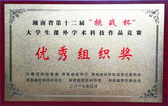 5月22日,由团省委、省教育厅、省经信委等共同举办的第十二届“挑战杯”湖南省大学生课外学术科技作品竞赛决赛在长沙理工大学圆满落幕。经过三天的激烈角逐,我校喜获一等奖1项、二等奖2项、三等奖7项,学校获优秀组织奖。