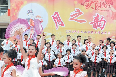吟月 在中秋佳节到来之际,东风小学前日举办了"月之韵"经典诵读展示活动,来自14个班级的747名学生共同参与经典诵读展示。校长陈霞表示,"做一个爱读书的人"是该校的校园文化主旨,从而营造浓浓的书香氛围。小刘军 摄