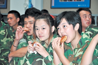 思乡 "今年中秋节,我第一次远离父母。虽然无法和家人共度佳节,但师生们欢聚一堂,就像一个大家庭!"昨日,长沙学院2010级新生秦安琪对记者说。长沙学院今年有来自全国各地的新生3400多人,学校特意为每位学生送上了月饼,并举行了联欢活动。徐媛 谢匡时 摄影报道