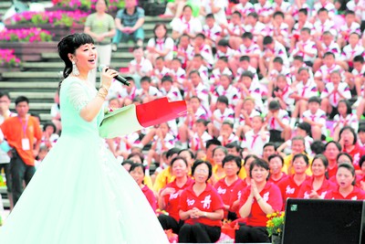 “我们都有一个家,名字叫中国,兄弟姐妹都很多,景色也不错……”激情的歌声飘荡在美丽的橘子洲头,歌声随湘江水摇曳,在岳麓山萦绕……昨日,一首《大中国》拉开了“爱国歌曲大家唱·湖南长沙篇”的序幕,《大中国》一下子点燃了会场气氛,欢呼声、歌声、掌声伴着迎风招展的彩旗,顿时把橘子洲变成爱国豪情激荡的地方。