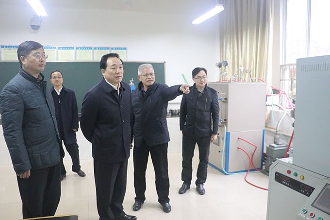 11月29日,副市长陈中、市政府副秘书长厉江华一行到长沙学院调研,实地考察了学校基建项目施工现场、艺术设计系成果展,机电工程系实验室等,并在一办公楼二会议室听取了学校党委书记韦成龙所作的工作汇报。