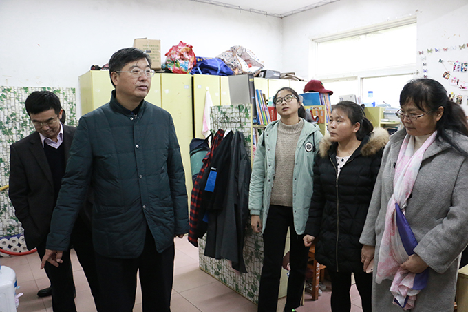 在检查过程中,韦成龙听取了各单位负责人关于安全情况工作汇报;检查了各楼栋的安全出口、疏散通道、用电设备、各通道的应急灯、灭火器等容易产生安全隐患的点位;实地考察维智园区和汇泽园区学生宿舍,了解学生学习及生活环境;深入到学生食堂工作间,围绕制作环境、剩饭处理等问题进行了现场调研,并嘱咐后勤处和饮食中心工作人员一定要确保食品卫生安全。当来到维智园女生宿舍时,韦成龙详细询问了饮水机、电热毯等电器使用情况,再三告诫同学们消防安全关乎生命,决不能掉以轻心,要做到“人走电停”。通过检查,他强调,各单位要把安全工作作为各项工作的重中之重,开展好安全教育,提高师生员工安全意识,普及各类安全知识,防范于未然,确保校园不出安全事故,切实保障师生员工生命健康安全。