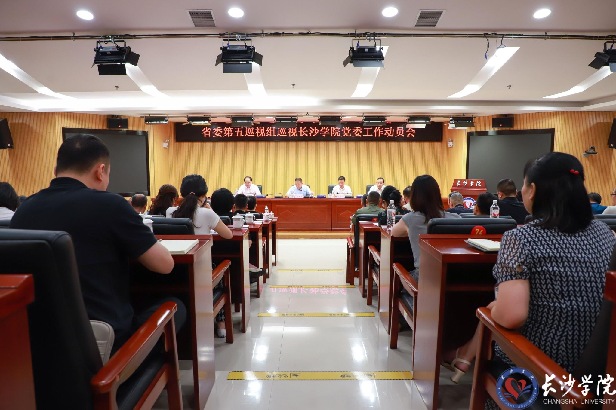 省委第五巡视组副组长邓联荣及有关同志,长沙学院领导班子成员出席会议,其他省管干部、近3年退休的厅级干部以及全体中层正职列席会议。
