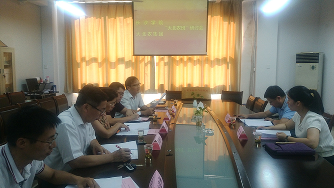 6月25日,由生环系和大北农集团共同举办的“二元制”人才培养模式研讨会在我校理工楼B511生环系会议室举行。大北农集团湖南大区总裁助理、望城科技园总经理赵爱平、大北农集团湖南大区创业人才总监谢求,教务处副处长吴庆华,生环系党总支书记赵晨曦、副主任刘臻、生环系原主任张建社、生物工程教研室主任唐建洲、陈治国等参加了研讨会。会议由生环系党总支书记赵晨曦主持。