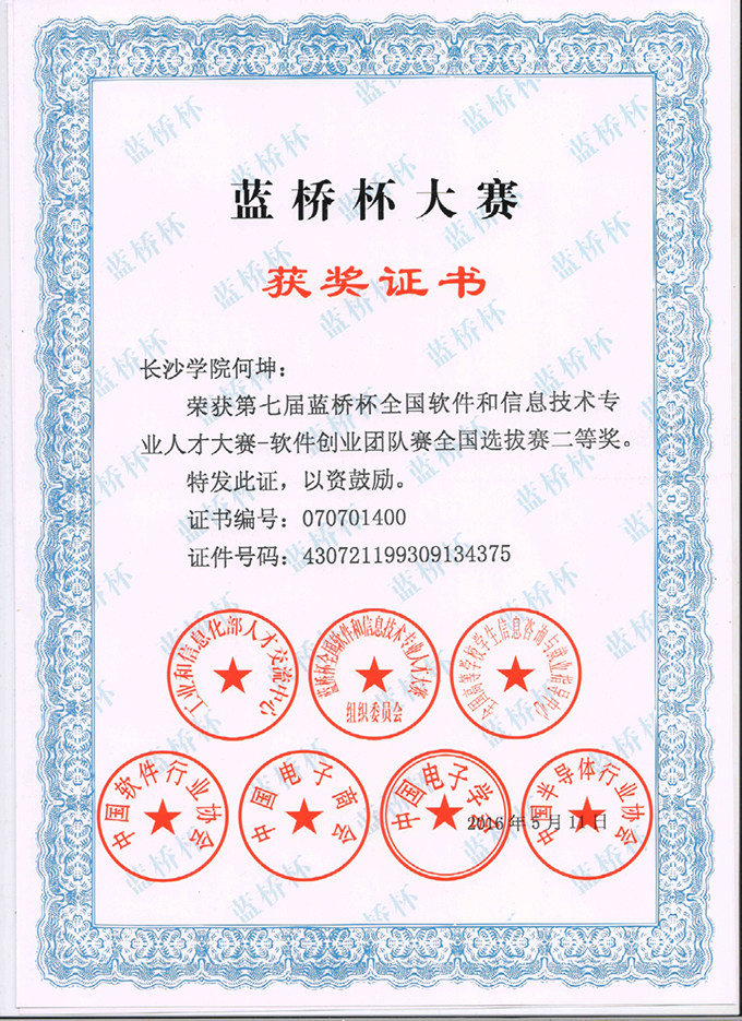 此次大赛由工业和信息化部人才交流中心、教育部全国高等学校学生信息咨询与就业指导中心联合主办。“蓝桥杯”全国软件和信息技术专业人才大赛是目前计算机学科竞赛中参赛人数最多、影响力最大的学科竞赛,获得众多知名企业的高度认可和鼎力支持,IBM、百度、阿里巴巴、腾讯、奇虎360、金证股份、凤凰网等知名企业以及数家投资机构派代表出席了颁奖典礼。