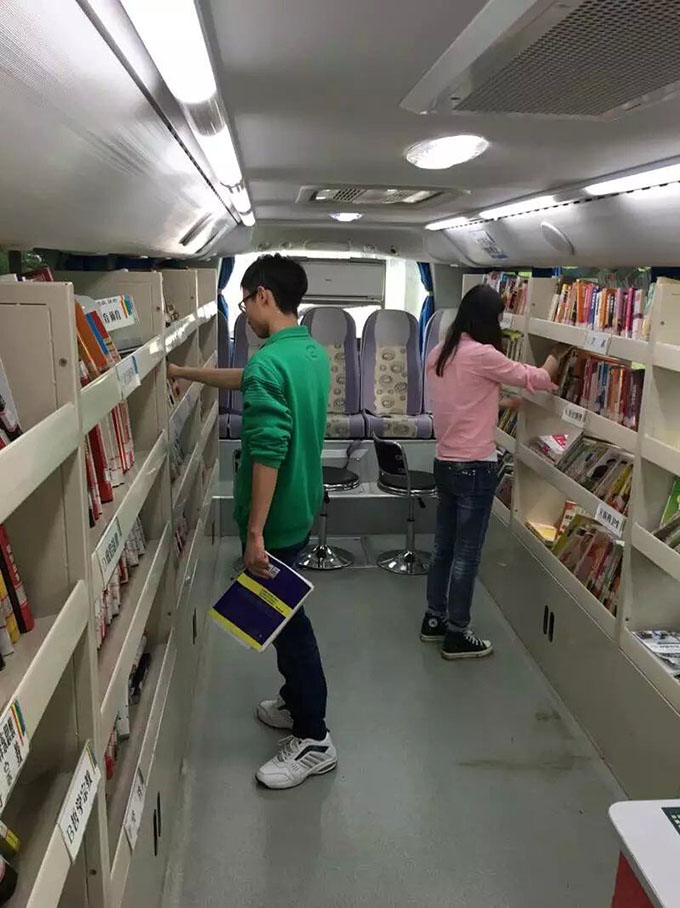读者在流动图书室选取读本