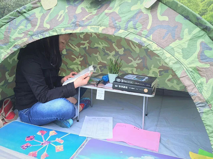 读者在帐篷中阅读