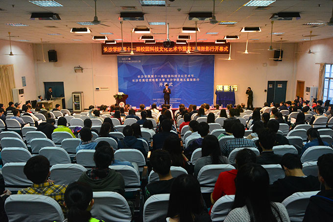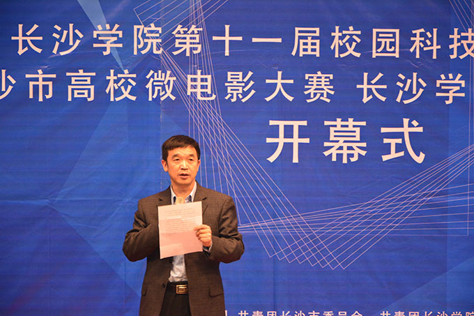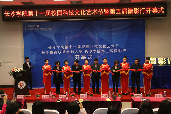 4月26日下午,长沙市高校微电影大赛、我校第十一届科技文化艺术节暨第五届微影行开幕剪彩仪式在学术报告厅举行。此次活动由长沙市团委、我校校团委主办,数计系承办。我校副院长周明侠、学校相关职能部门负责人以及各系党总支书记、副书记出席了剪彩仪式,各系部分学生、第四届“微影行”优秀剧组到场观看。