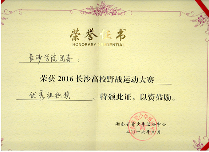 为庆祝“五四”青年节的到来,4月23日湖南省青少年活动中心主办的“2016长沙高校野战运动大赛”在长沙市岳麓区王家湾第九区野战俱乐部举行,活动旨在培育广大青少年爱国主义精神,引导和帮助青少年加强体育锻炼、培养拼搏精神。本次大赛参赛队伍均由长沙地区高校学生组建,包含国防科大、湖南司法警官职业学院等共16支队伍、近百余名大学生参加。大赛采取5人制团体对抗赛形式,通过分组赛、淘汰赛决出冠亚季军。经过紧张激烈的角逐,我校国旗班超远一队夺取冠军,国旗班超远二队获得亚军,我校团委荣获“优秀组织奖”。