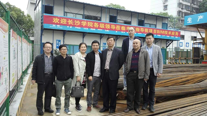 考察过程中,韦成龙书记一行参观了该公司承建的湖南师范大学研究生公寓项目工地。公司总经理许霸平、BIM技术总监张平等人重点介绍了BIM技术的特点、国内外应用现状、省内应用情况、BIM技术在该项目中的应用情况等。韦成龙书记对该公司应用BIM技术所产生的效益甚感兴趣,他希望土木建筑工程系充分发挥已建成的虚拟仿真实验教学中心、全国BIM技能考点(全省仅4家考点)平台优势,积极鼓励广大师生学习国内外先进技术,更好的培养应用型人才、服务地方经济发展,并特邀该公司的技术骨干来校进行BIM技术应用的专题讲座。