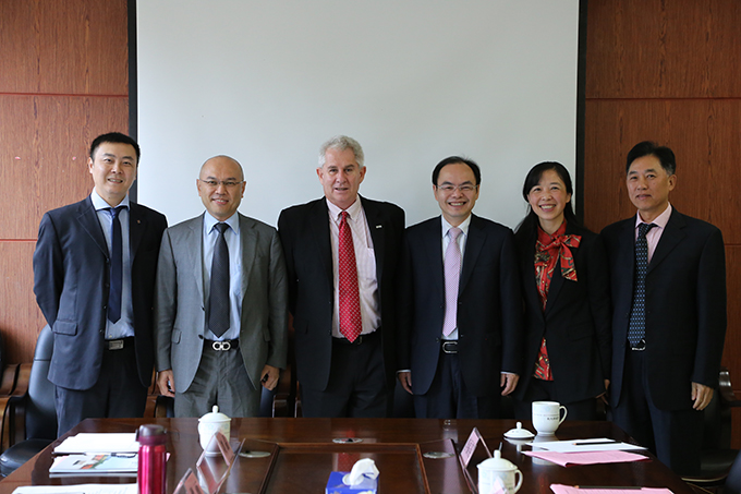 4月18日,澳大利亚维多利亚大学国际部主任Rhys Williams一行五人在长沙市人民政府外事侨务办公室缪画副主任的陪同下来我校洽谈两校合作交流事宜。校长杨小云在校办公楼二会议室热情接待来宾。