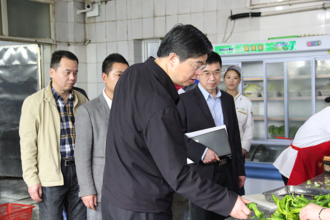 隐患排查分食品安全、道路交通安全、园区安全和物防技防四个专项进行。韦书记、杨院长一行逐个查看食堂设备设施情况、道路及交通辅助设施情况、宿舍园区防范设施及生活设施配备情况、监控设施运行情况等,全面摸排了校园安全现状,边查看、边讨论、边记载。