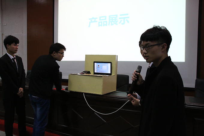 “智能空气净化机的产业化”项目团队通过PPT向观众展示了智能空气净化机的工作原理和特点。他们设计的净化机采用“主动螺旋旋风除尘”技术,不仅提高了产品性能还降低了产品的成本,具有广阔的市场前景。评委在听取汇报后对项目分别进行了点评,评委组组长李方敏教授充分肯定了“智能空气净化机的产业化”项目的创新点和优势,并就项目的后期开发提了两点建议:一是在二代产品制作出来后应尽快送检认证;二是尽快申请除尘专利,保护知识产权。