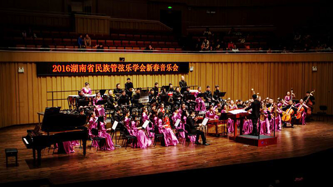近日,长沙音乐厅举办了长沙人艺民族管弦乐团新年专场音乐会,我校音乐系青年教师熊琦担任乐团首席,为长沙市民带来一份最为温馨的春天问候。