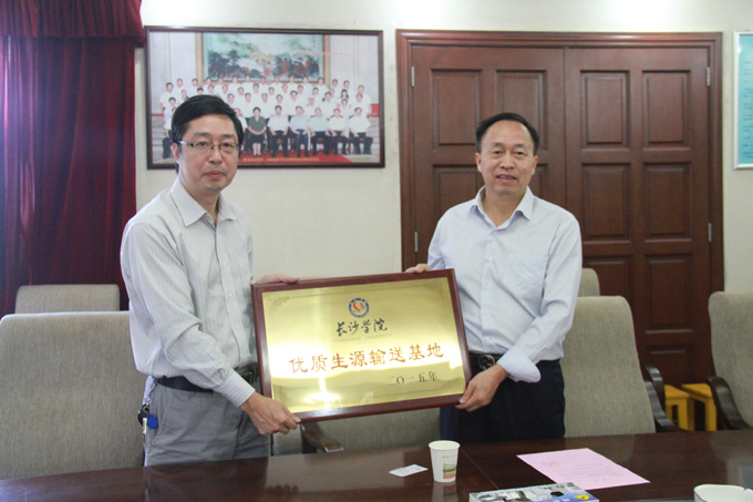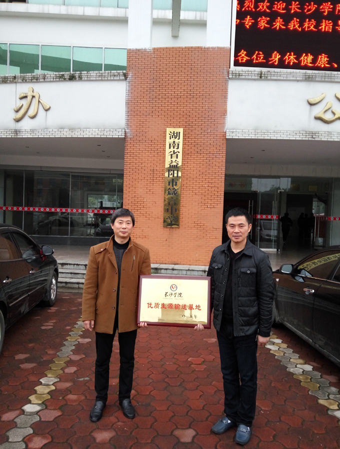 为进一步加强我校与省内重点中学的交流和沟通,提升学校影响力,吸引更多优质生源,经学校领导批准,11月中下旬至12月上旬,我校招生与就业指导处组织人员分别赴湖南省地质中学、醴陵一中、箴言中学、临澧一中、永州二中等5所重点中学走访,与之签订了建设优质生源基地协议,举行了授牌仪式,授予了五所重点中学"长沙学院优质生源输送基地"牌匾。