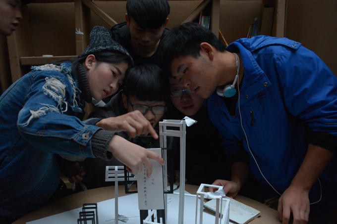 活动伊始,主持人特别介绍此次活动的指导老师以及活动规则,随后,艺术设计系副主任张建龙宣布"蜂巢密室"体验活动正式开幕。此次蜂巢密室展览的所有物品均由14级艺术系学生亲手设计并制作,密室共分十二个独立空间,每一个空间的设计都别出心裁地把线索设在阵法中,包括拼字阵、锥形阵、拼图阵、拆字得数阵、图形阵等,而打开关卡的密码就藏在空间任意的细节里,同时会有迷惑性的线索增加逃脱难度,这要求体验者必须开动脑筋,一步步找寻信息,并结合多方面知识解锁进入下一关。最后一关"正月朔日"设计得格外精巧,体验者们首先要根据提示板找到数字答案对应的第一个城市模型,进而寻找城市线路,体验者们需要在城市模型中发现开锁密码,解开最后一道锁,完成整个密室逃脱过程。