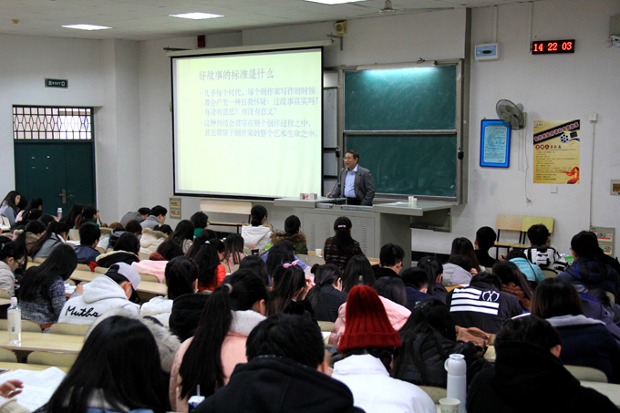 12月8日下午,由中文与影视传播系主办的《电视剧如何讲好中国故事》专题讲座在涵虚楼A多5举行。讲座由《中国电视》执行主编、高级编辑李跃森先生主讲,中影系主任张吕主持,副主任荣斌及从事电视教学与研究教师出席了讲座。