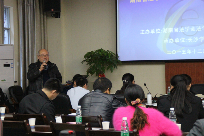 第三阶段的专题演讲由湘潭大学法学院副院长、博士生导师吴勇教授和湖南工业大学法学院院长刘康复教授主持。来自长沙学院、湖南大学、湘潭大学、湖南师范大学、湘南学院等高校的专家学者分别围绕"'MOOC'背景下法学课程教学模式的重构"、"法律专业实践教学的'漾翅模式'"等专题进行了演讲,由湖南省法学会法学教育研究会副会长孙长坪教授、国防科大朱道坤博士进行与谈。