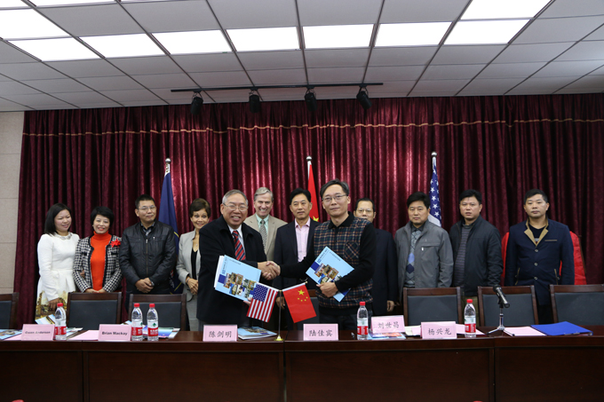 11月11日上午,我校附中多媒体演播室高朋满座,我校副校长刘世昌、纪委书记杨兴龙与来自美国犹他州的国际友人共同见证了附中和美国犹他国际学校两校结为姐妹学校的签约与揭牌仪式。