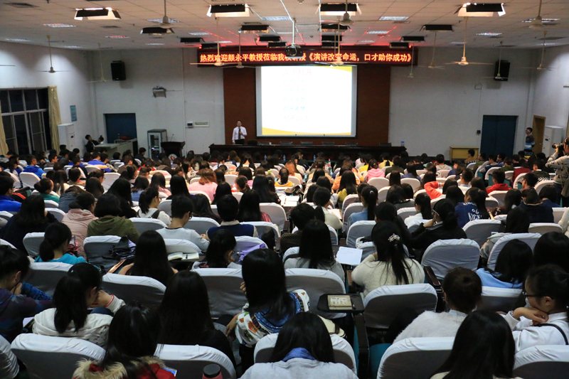 10月29日,由我校教务处主办,演讲与口才励志协会承办的《演讲改变命运,口才助你成功》讲座在致远楼学术报告厅举行。讲座由当代著名演讲家、世界华人演讲家同盟副主席、中国演讲协会常务副会长颜永平教授主讲,副院长屈林岩主持。