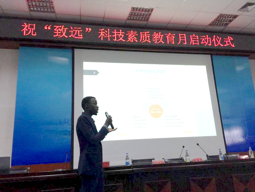 启动仪式结束后,湖南大学信息科学与工程学院外籍访问学者 Abdoullahi 博士做了题为"大数据与机器学习"的讲座,讲座反响热烈,效果很好,受到了在座师生的一致好评。