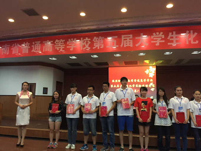 7月25-26日,湖南省高等院校第五届大学生化学实验技能竞赛在吉首大学举行,我校3名学生在领队赵晨曦教授,指导老师彭霞辉教授、李艳华博士的带领下参加了比赛。经过激烈角逐,13级应化一班学生黄文君获得一等奖,12级应化专业学生谢宜获三等奖。