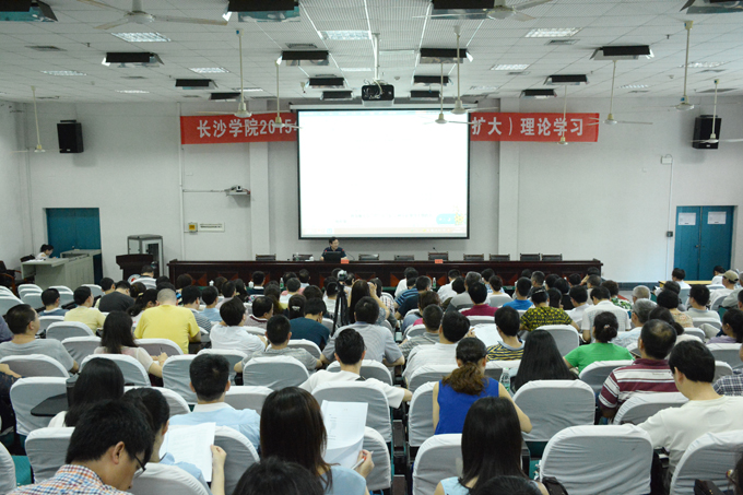 6月12日下午,我校在致远楼学术报告厅组织2015年第四次党委中心组(扩大)理论学习。湖南省委讲师团主任郑昌华教授作了主题为"践行‘三严三实'要求,提升做人用权干事境界"的专题辅导报告。校领导韦成龙、杨小云、屈林岩、王永宏、陈大川、杨兴龙、雍正海,全体中层干部,党支部书记及离退休老同志代表参加了学习。党委书记韦成龙主持会议。