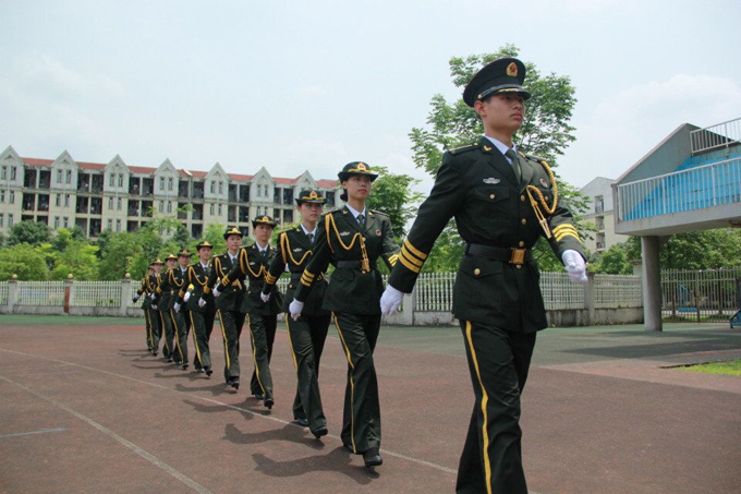 "听吧,新征程号吹响,强军目标召唤在前方……"每天清晨,天健体育场内的《强军战歌》铿锵有力,激荡着每位同学的心。这是我校新组建的首届"国旗班"的成员在训练。