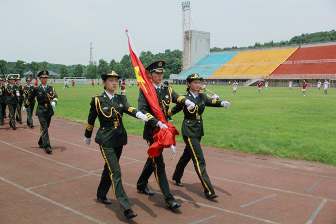 为深入贯彻中宣部和省委关于认真组织开展纪念中国人民抗日战争暨世界反法西斯战争胜利70周年群众性主题教育活动有关文件精神,进一步加强长沙学院学生的爱国主义教育,培养学生的爱国热情,增强学生的爱国意识,在党委宣传部、武装部、校团委的密切配合下,校团委从全校万余名学生中精选了55名学生组建成长沙学院首届国旗班。为迎接省教育厅组织的"湖南省高校国旗班风采展示大赛",他们每天利用空余时间进行艰苦训练。