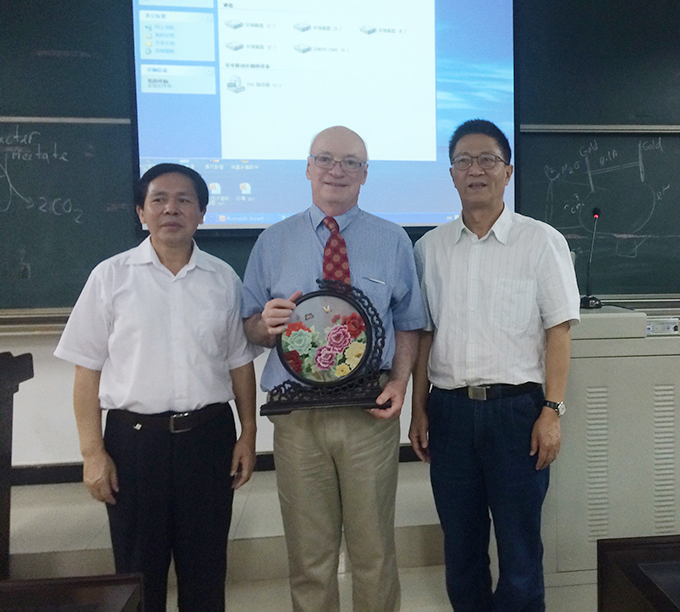 6日上午,Michael J.Mclnerney教授在理工楼A303会议室为生物与环境工程系生物专业的学生和教师做了关于微生物与能源领域方面的报告。随后,Michael J.Mclnerney教授与郭清泉教授等探讨了双方感兴趣的研究领域,并初步达成了合作研究的意向。郭清泉带领Michael J.Mclnerney教授参观了我校"经济动植物品质调控及应用"湖南省高校重点实验室。