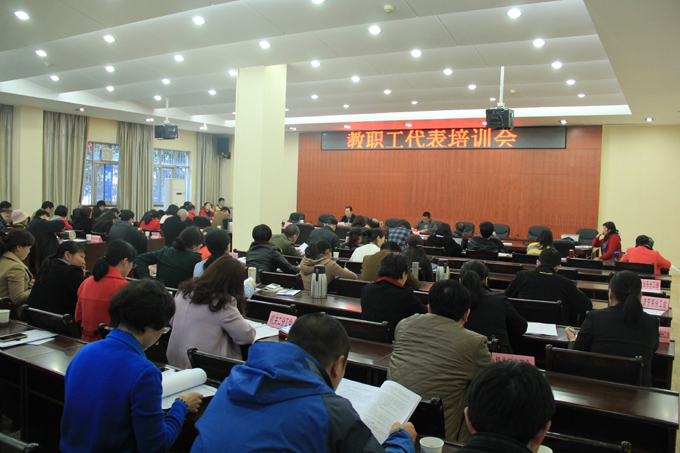 为了充分发挥好教职工(工会会员)代表的作用,提高代表的履职能力。3月27日下午,我校在图书馆会议室对第三届教职工(工会会员)代表进培训。长沙市总工会民主管理部部长李智就"如何当好教职工代表"对代表们进行授课。培训由学校纪委书记、工会主席杨兴龙主持。