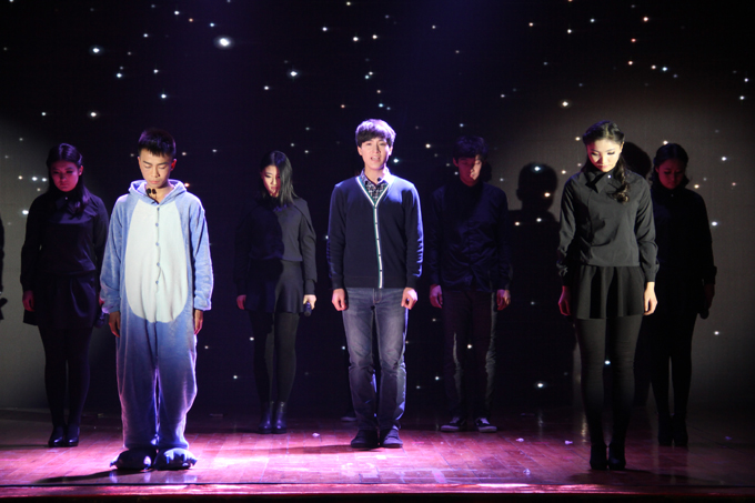 青春先锋派话剧《陪你失眠》,融入了大量新的元素,先以绚丽的星空背景吸引了观众的眼球,以星辰闪烁暗示着大学生们意识的流动。这部理想与现实摩擦的先锋话剧在青果小剧场以"接地气"的多样元素、夸张的表演方式、贴近生活的素材赢得了在场观众的喜爱。