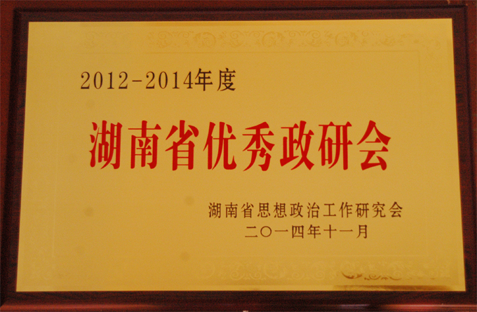12月30日下午,湖南省思想政治工作会议暨湖南省思想政治工作研究会第十六次会员代表大会在长沙召开。会议表彰了2012-2014年度全省思想政治工作先进单位、优秀思想政治工作者、优秀政研会、优秀政研干部和优秀政研成果。我校获2012--2014年度湖南省思想政治工作先进单位,我校政研会获湖南省优秀政研会。