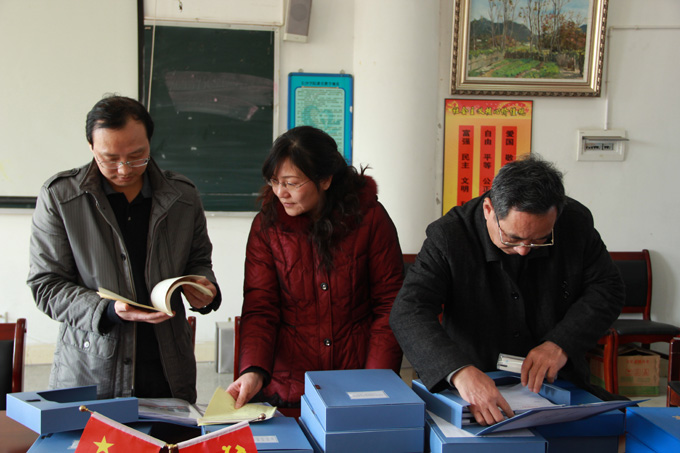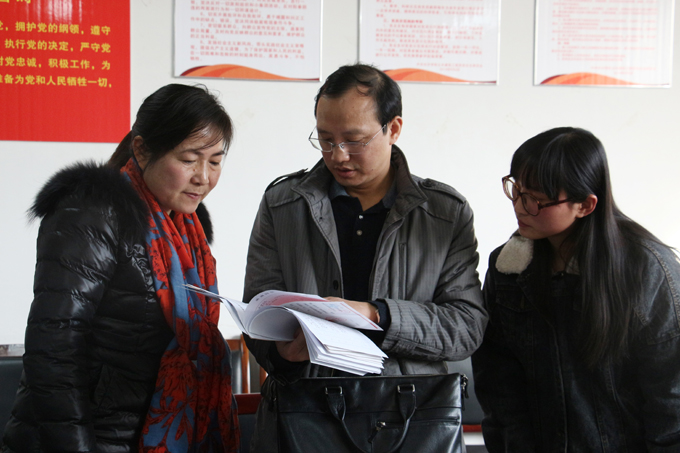 调查核实组成员查阅土木建筑工程系党建工作有关材料