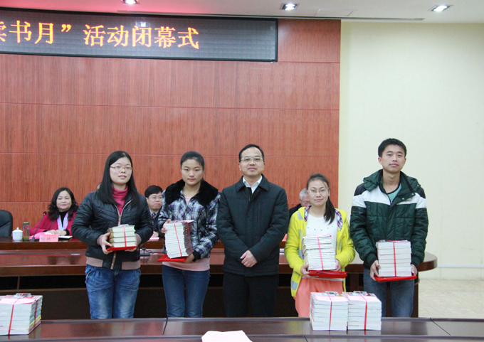12月8日下午,历时一个月的第六届"三湘读书月"活动在图书馆一楼会议室圆满闭幕。副院长屈林岩,副院长王永宏,党委宣传部、学生工作部、教务处、校团委、图书馆等部门负责人出席了闭幕式。图书馆副馆长刘海萍主持了闭幕式。