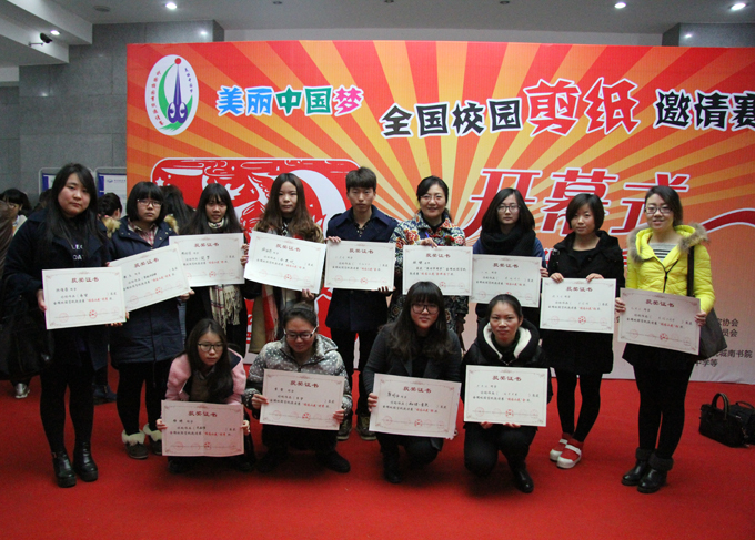 12月6日,由中华文化促进会剪纸艺术专业委员会和湖南省民间文艺家协会联合主办的"美丽中国梦"全国校园剪纸邀请赛颁奖仪式暨长沙市第四届校园剪纸大赛优秀作品展开幕式在湖南省图书馆举行,我校有12件作品获奖并参加了展览。