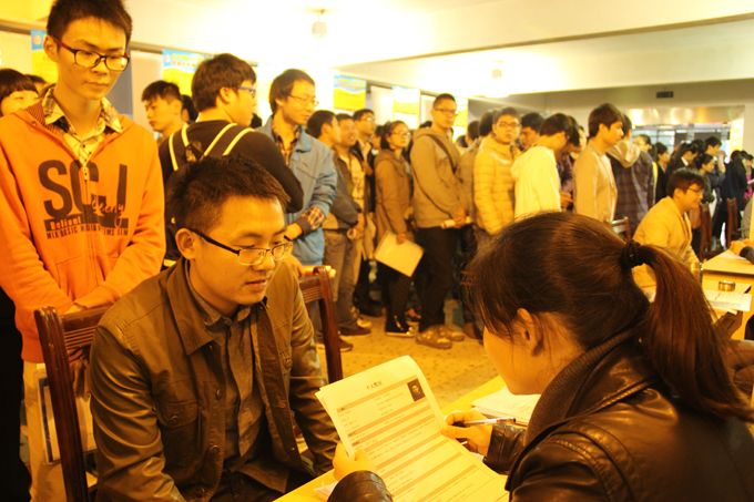 招聘会现场人头攒动、热闹非凡,应聘学生都展现出自己最佳的精神风貌。来自中文与影视传播系11级汉语言文学专业的宁佩在接受采访时掩藏不住内心的欣喜之情:"我对自己刚才的表现很满意,也有一定的把握。我认为好的心态在面试中非常重要。"11级土木建筑工程系工程管理专业的曾涛说:"希望能尽量找到专业对口的工作,至于薪资、工作地点都不成问题,年轻人应该出去闯荡。"11级物流专业的张海旺告诉记者,大三的时候便尝试参加了学校大大小小的招聘会,积累了一些面试经验。今年他已经参加了湖南大学、中南大学及我校组织的一些招聘会,目前已签约蒙牛乳业(集团)股份有限公司。