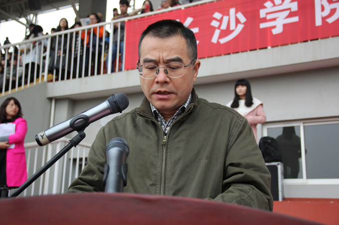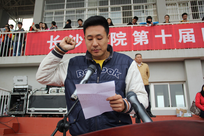 党委副书记、副院长李云龙宣读了本届运动会组织委员会及仲裁委员会名单,并宣布运动会开幕。随后,运动员代表和裁判员代表分别宣誓。