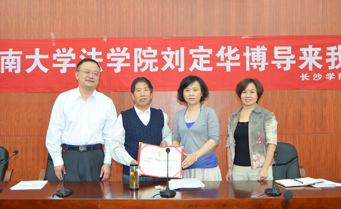 今年是我校创办法学教育三十周年,10月17日下午,应校科技处和政法系的邀请,湖南省法学教育研究会会长、湖南大学法学院原院长、博士生导师刘定华教授来我校讲学。在图书馆一楼会议室,刘定华教授就法律课程建设、法学教育研究、复合型人才培养等问题与我校师生代表进行了深入的交流。